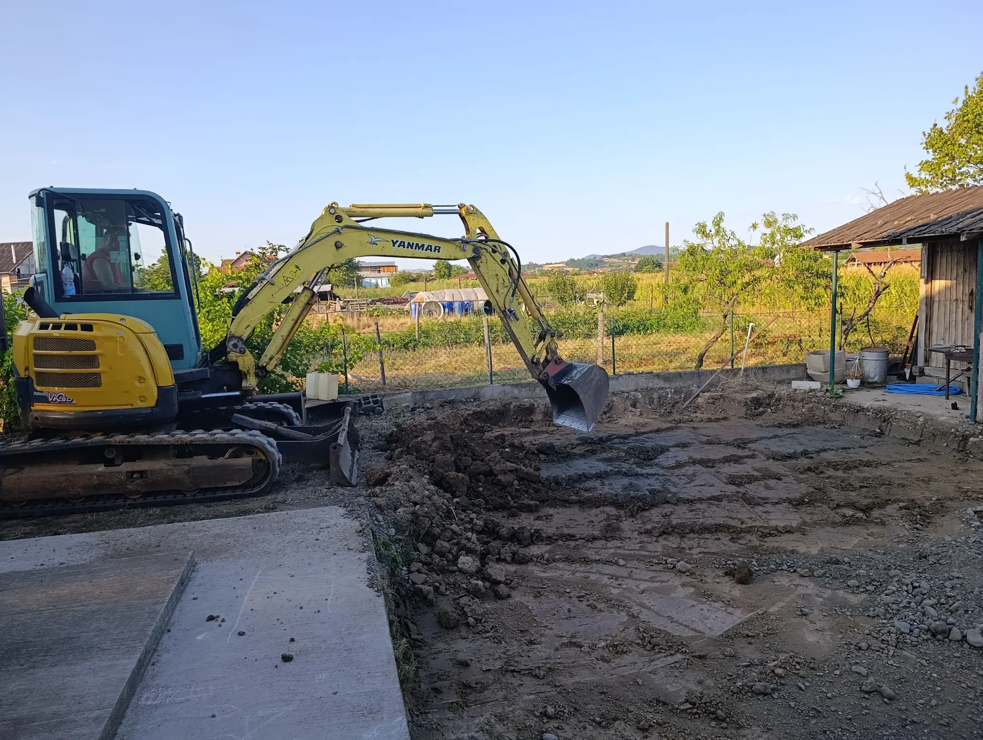 Usluge Iskopa mini bagerom sa rukovaocem Mašine za usluge iskopavanja i transporta zemlje. Posedujemo vibro ploču i rotacioni laser za precizno kopanje.