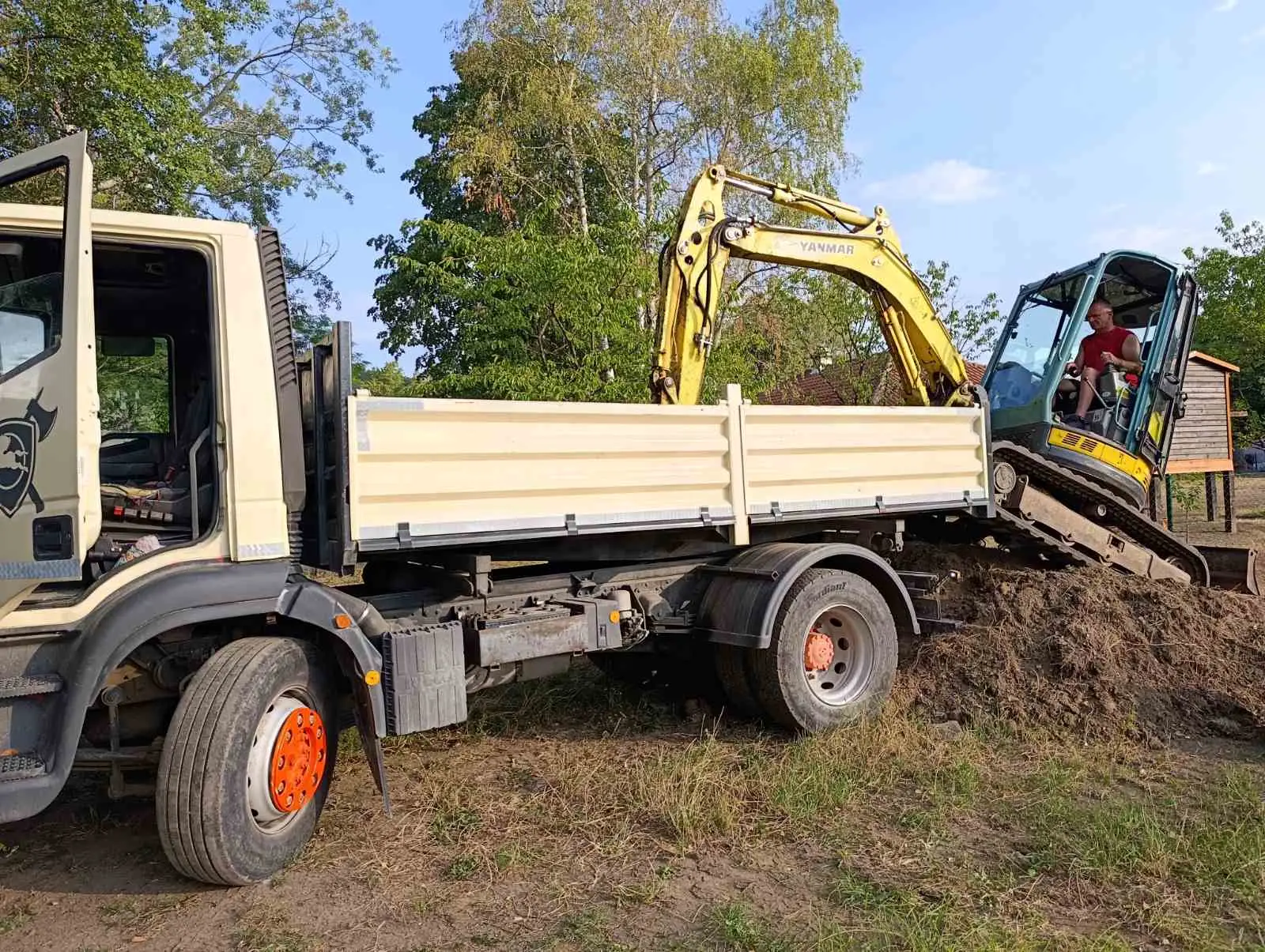 Naš bager poseduje laser za precizno kopanje što je idealno za temelje objekata (kuća, vikendica, pomoćnih objekata, bazane). Kiper kamion odvozi iskopanu zemlju ostavljajući gradilište čisto.